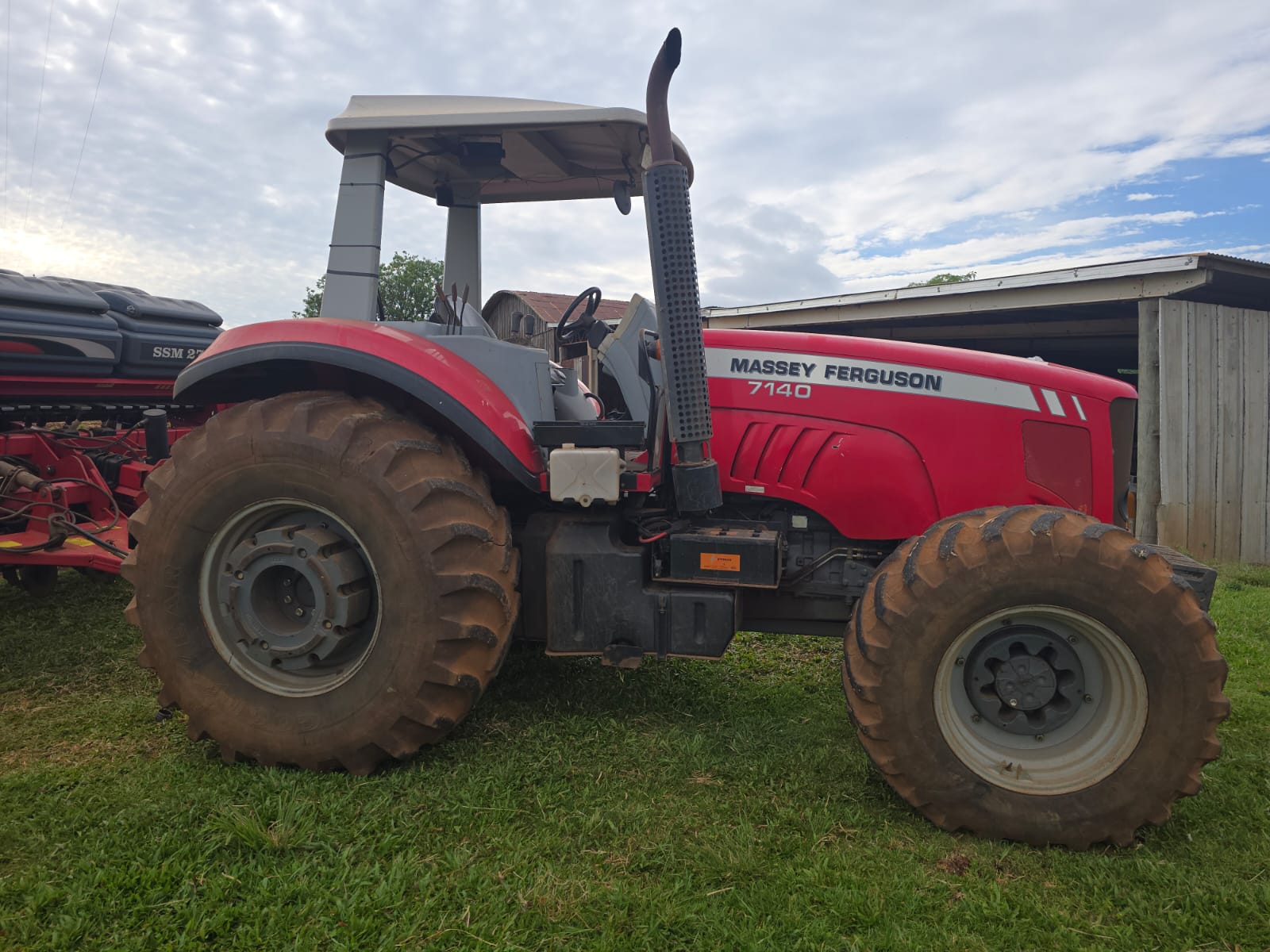 TRATOR AGRICOLA MODELO MF 7140, 4X4, PLATAFORMADO, COM TOLDO, COMANDO TRIPLO COM FLUXO CONTINUO, PNEU TRASEIRO 24.5-32, PNEU DIANTEIRO 14.4-28, COM PESO DIANTEIRO E TRASEIRO, SEM HIDRAULICO, MARCA MASSEY FERGUSSON, ANO 2009
